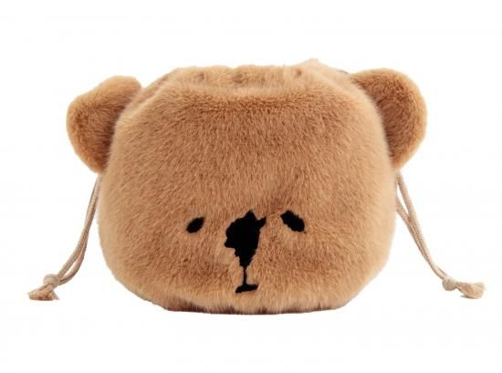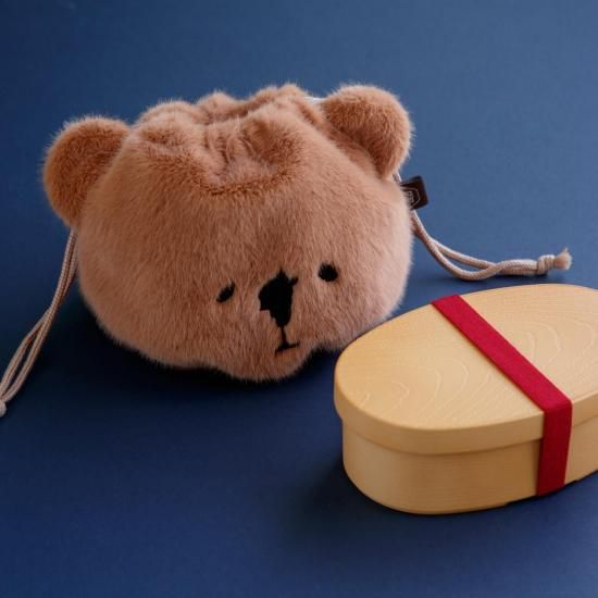 ずっと触っていたいふわふわの生地で醤油くまのお顔巾着ポーチ。